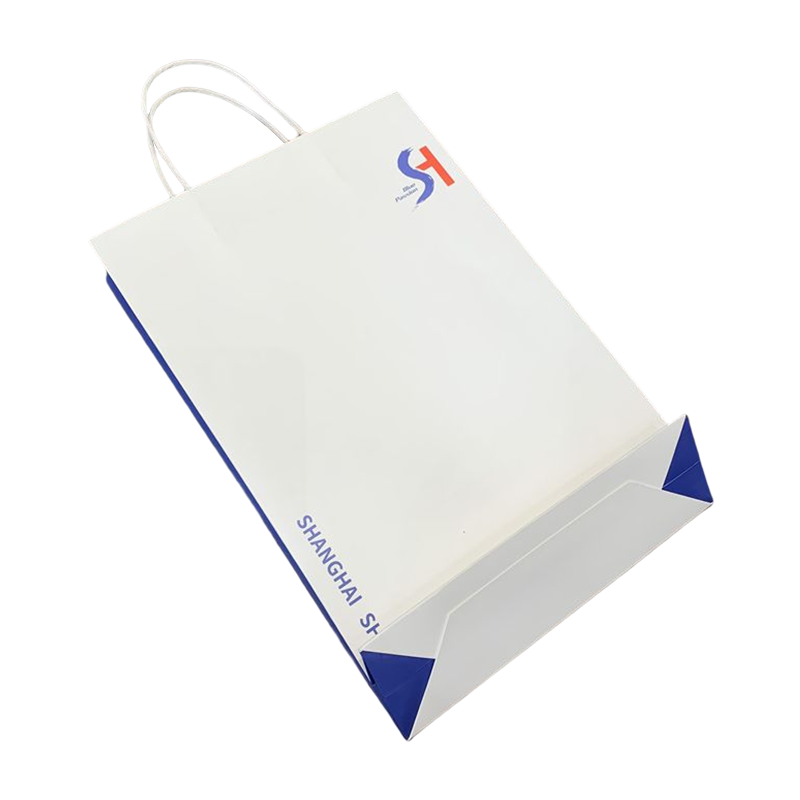 China Logo Personalizat Pungi De Hârtie Albă Geanta De Cumpărături De Marca Geantă De Hârtie Promoțională Cu Mâner Pentru Îmbrăcăminte Furnizori și